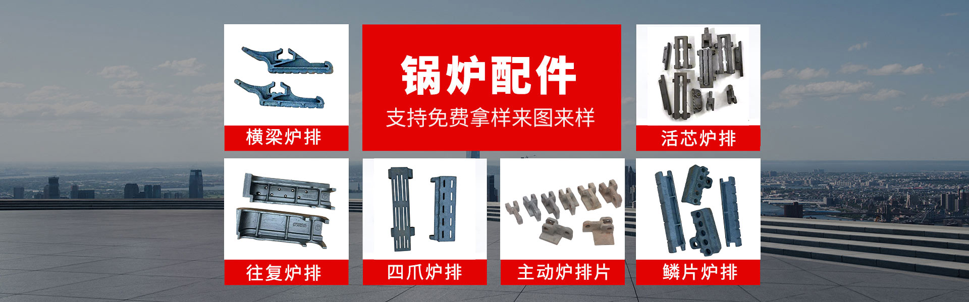 產品有橫梁爐排,活芯爐排,往復爐排,合金爐排,四爪爐排,鱗片爐排,省煤器管,鏈條,刮板,除渣機刮板等
